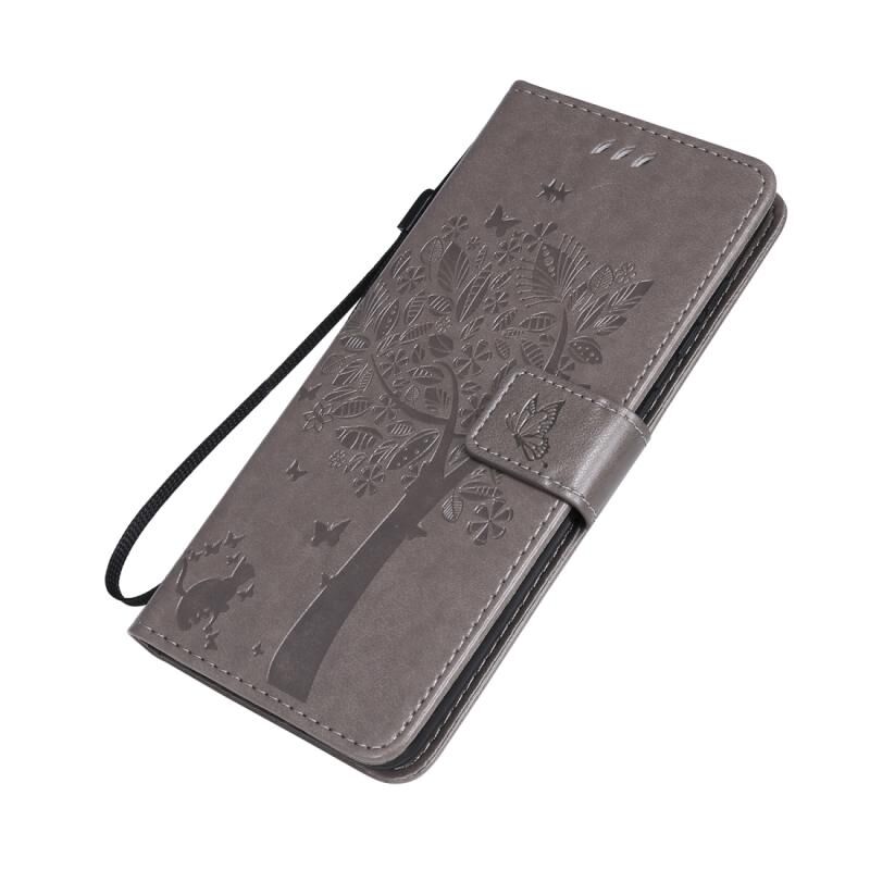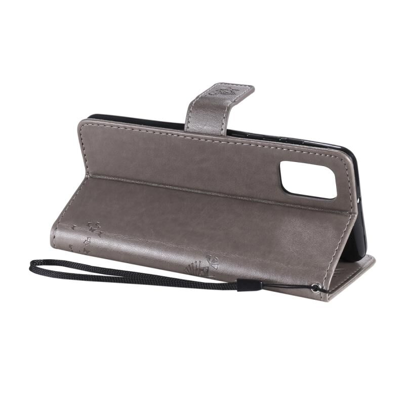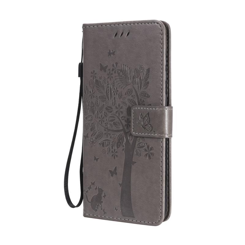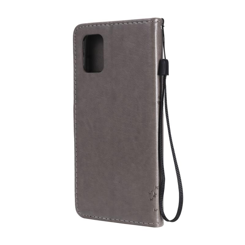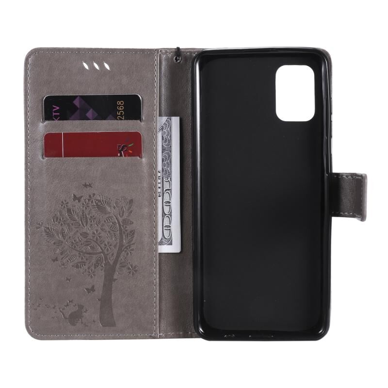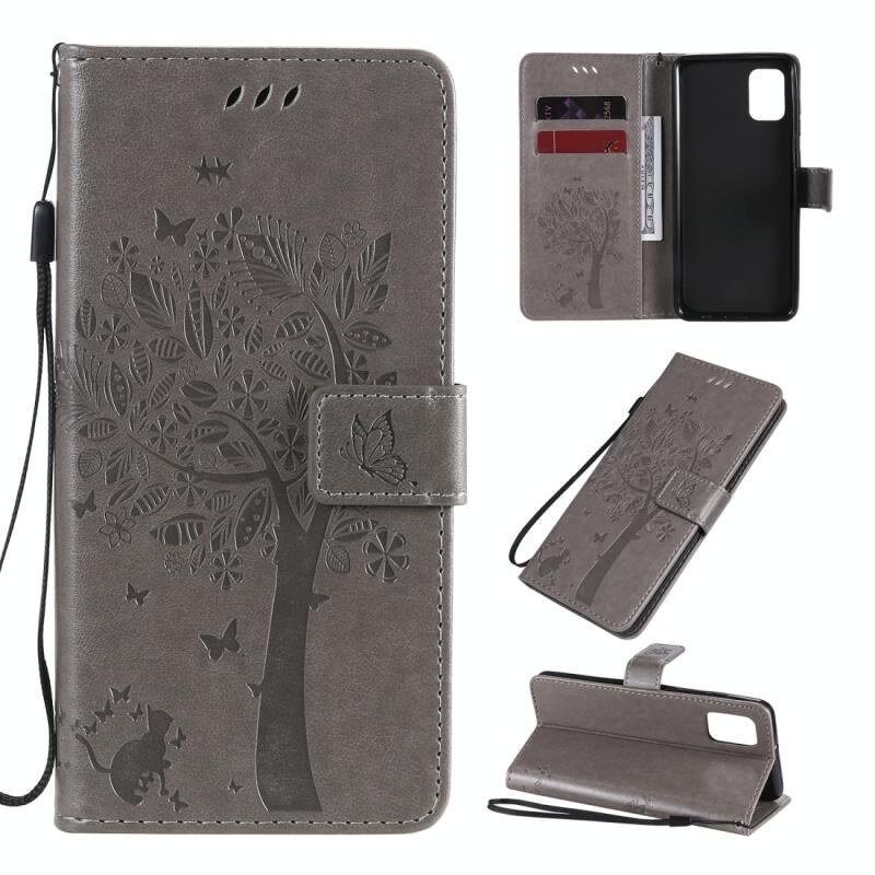Για Samsung Galaxy A31 Tree & Cat ανάγλυφο μοτίβο οριζόντια Flip δερμάτινη θήκη με θήκη & υποδοχές για κάρτες & πορτοφόλι & κορδόνι (Γκρι)