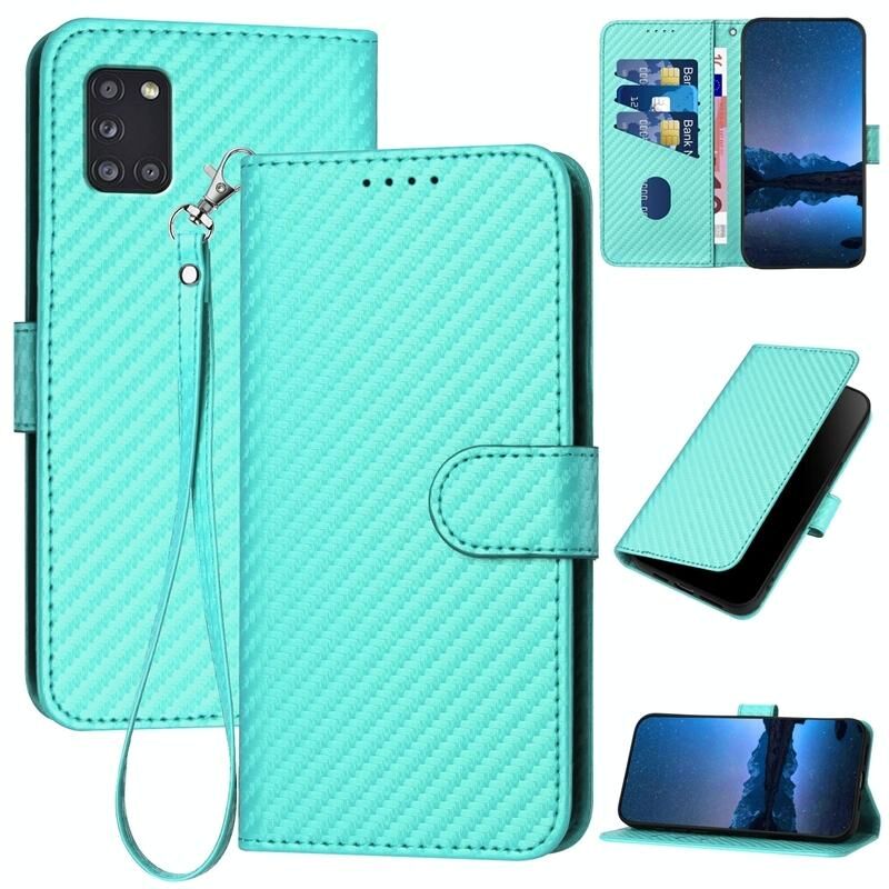 Για Samsung Galaxy A31 YX0070 Carbon Fiber πόρπη δερμάτινη θήκη τηλεφώνου με κορδόνι (γαλάζιο)