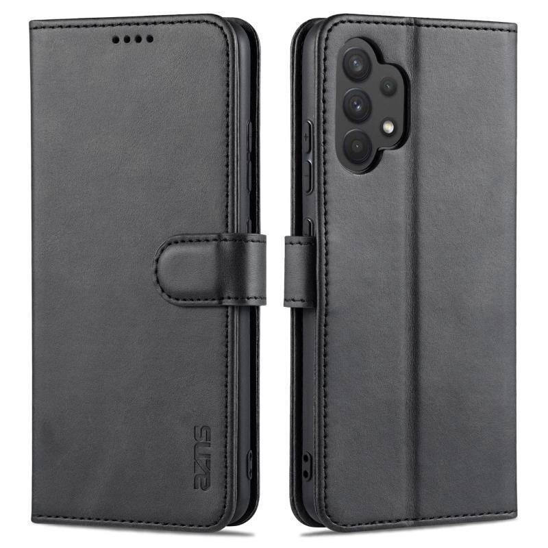 Για Samsung Galaxy A32 4G AZNS δέρμα αίσθηση μοσχάρι υφή οριζόντια Flip δερμάτινη θήκη με υποδοχές για κάρτες & κάτοχος & πορτοφόλι (μαύρο) (Μαύρο)