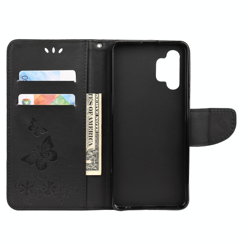 For Samsung Galaxy A32 4G Butterflies Embossing Horizontal Flip Leather Case with Holder & Card Slots & Wallet(Black)