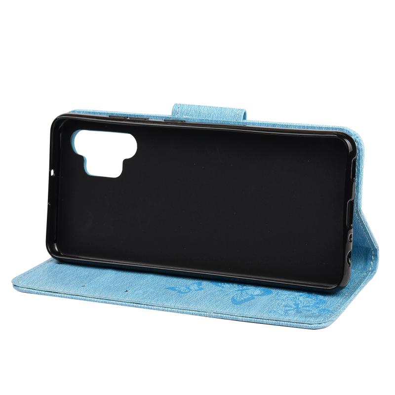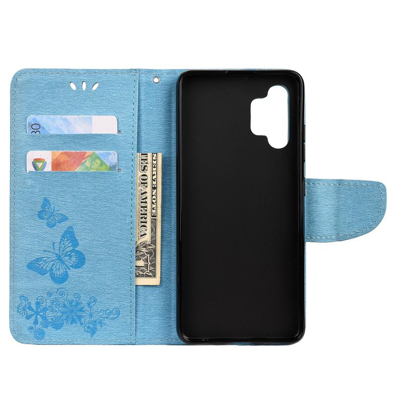 For Samsung Galaxy A32 4G Butterflies Embossing Horizontal Flip Leather Case with Holder & Card Slots & Wallet(Blue)