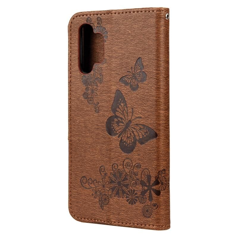 Για Samsung Galaxy A32 4G πεταλούδες ανάγλυφη οριζόντια Flip δερμάτινη θήκη με θήκη & υποδοχές για κάρτες & πορτοφόλι (καφέ)