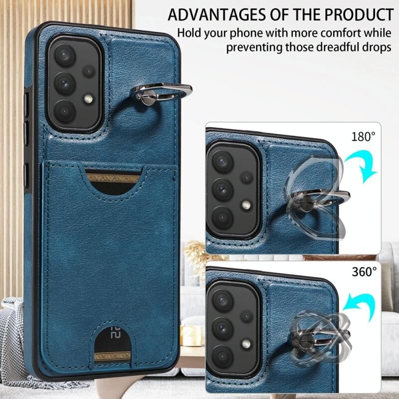 Για Samsung Galaxy A32 4G μοσχάρι Υφή κάρτα Slot δαχτυλίδι κάτοχος υπόθεση τηλεφώνου (Μπλε)
