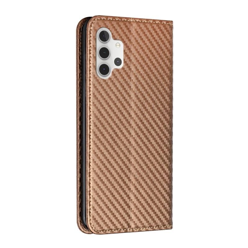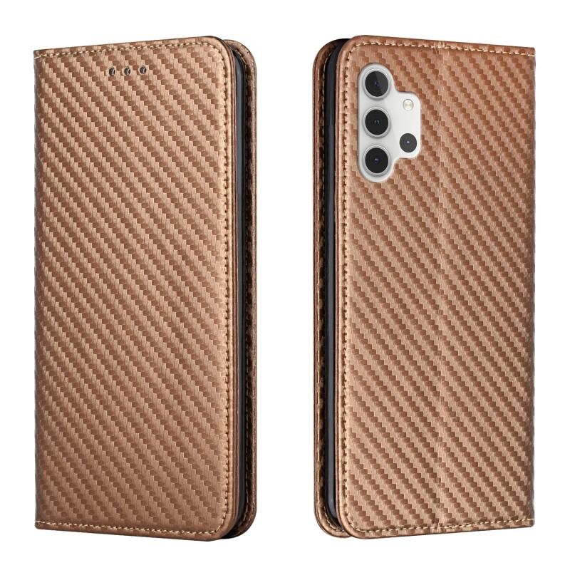 Για Samsung Galaxy A32 4G Carbon Fiber Υφή Flip κάτοχος δερμάτινη θήκη τηλεφώνου (Καφέ)