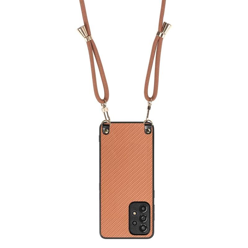Για Samsung Galaxy A32 4G Carbon Fiber Texture δέρμα πίσω κάλυμμα υπόθεση τηλεφώνου με λουράκι σταυρού (καφέ)