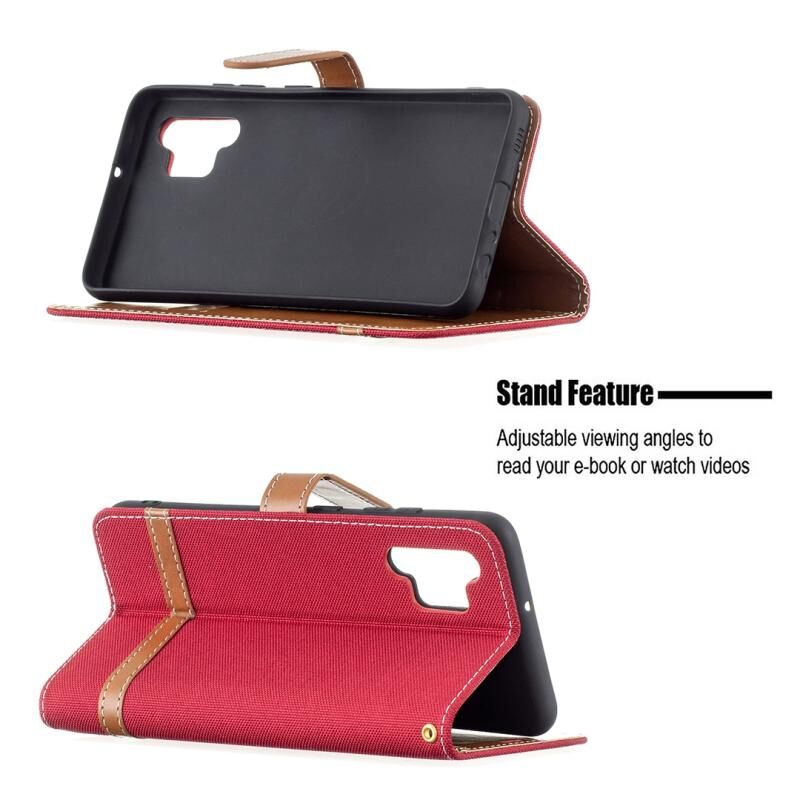 Για Samsung Galaxy A32 4G χρώμα ταιριάζει Denim υφή οριζόντια Flip δερμάτινη θήκη με θήκη & υποδοχές για κάρτες & πορτοφόλι & κορδόνι (Κόκκινο)