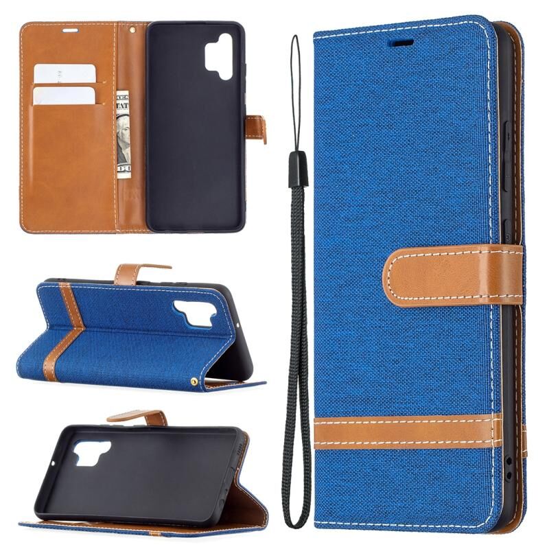 Για Samsung Galaxy A32 4G χρώμα ταιριάζει Denim υφή οριζόντια Flip δερμάτινη θήκη με θήκη & υποδοχές για κάρτες & πορτοφόλι & κορδόνι (Βασιλικό μπλε)