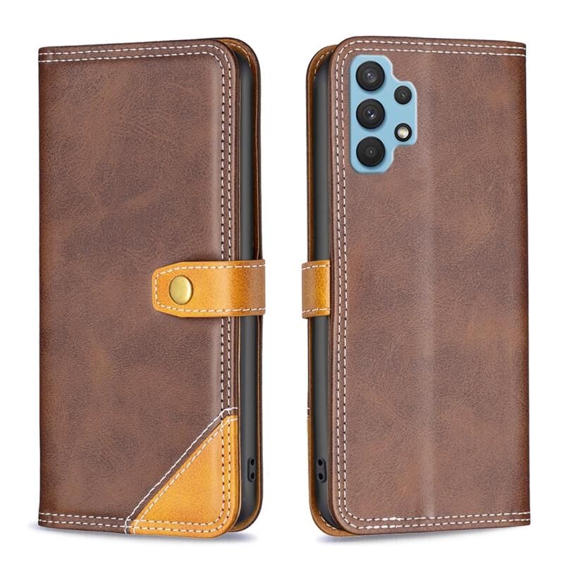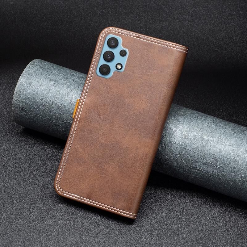 Θήκη τηλεφώνου Samsung Galaxy A32 4G από δέρμα με διπλή ραφή και αντιστοίχιση χρωμάτων (Καφέ)