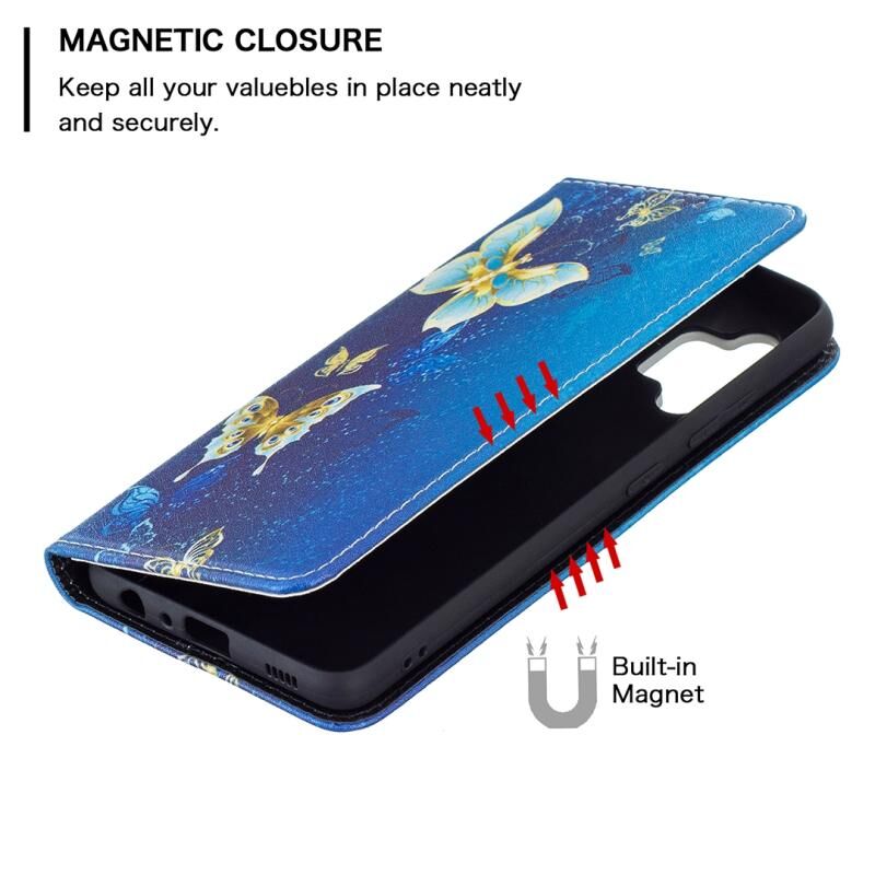 Θήκη Samsung Galaxy A32 4G με πολύχρωμο σχέδιο, αόρατο μαγνητικό, οριζόντιο flip από δερματίνη PU με βάση & θήκες για κάρτες & πορτοφόλι (Κόκκινα Φύλλα)