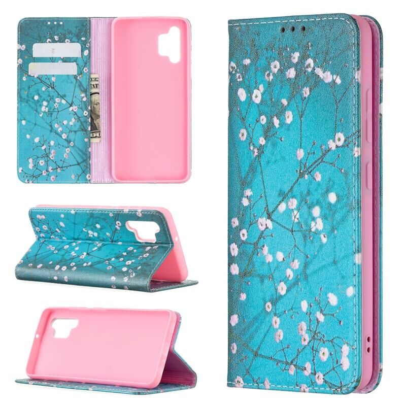 Θήκη Samsung Galaxy A32 4G με πολύχρωμο σχέδιο, αόρατο μαγνητικό, οριζόντιο flip από δερματίνη PU με βάση & θήκες για κάρτες & πορτοφόλι (Λουλούδι Δαμασκηνιάς)