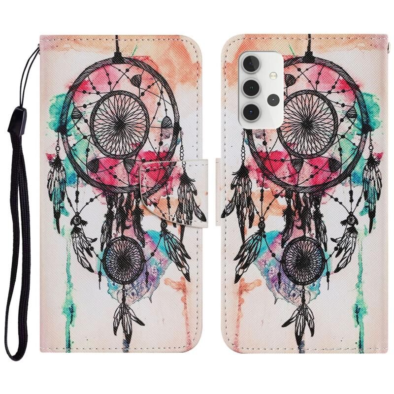 Θήκη Samsung Galaxy A32 4G με πολύχρωμο σχέδιο, οριζόντια αναδιπλούμενη από δερματίνη PU με βάση στήριξης, θήκες για κάρτες, πορτοφόλι & κορδόνι (Ανεμοχτύπες)