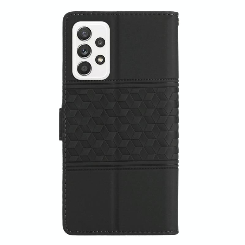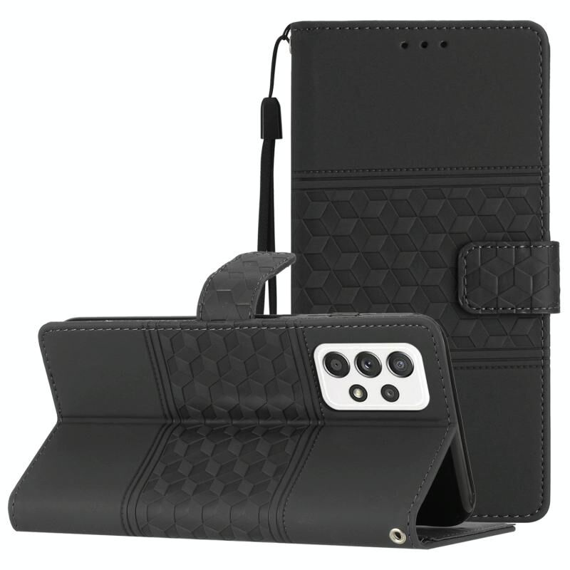 Για Samsung Galaxy A32 4G Diamond ανάγλυφο δέρμα αίσθηση δέρμα τηλέφωνο υπόθεση με κορδόνι (Μαύρο)