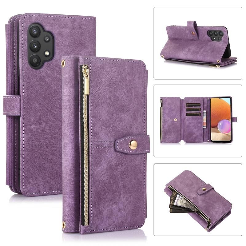 Για Samsung Galaxy A32 4G Dream 9-Card πορτοφόλι φερμουάρ τσάντα δέρμα τηλέφωνο υπόθεση (Μωβ)