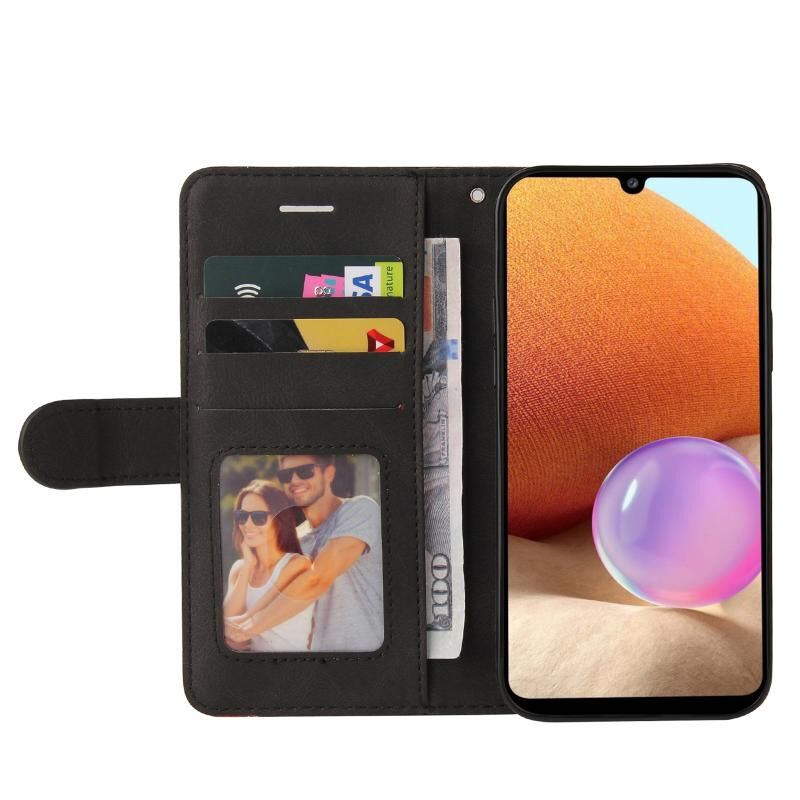 Για Samsung Galaxy A32 4G Dual-color Splicing οριζόντια Flip PU δέρμα υπόθεση με θήκη & υποδοχές για κάρτες & πορτοφόλι (Μαύρο)