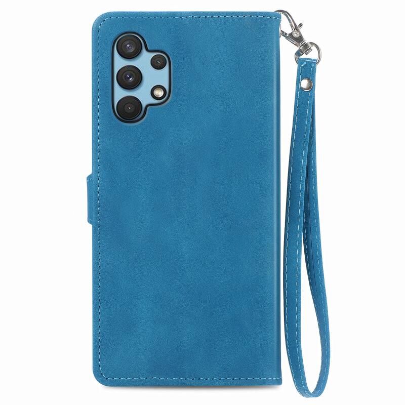 Για Samsung Galaxy A32 4G ανάγλυφο λουλούδι Shockproof δέρμα υπόθεση τηλεφώνου (Μπλε)