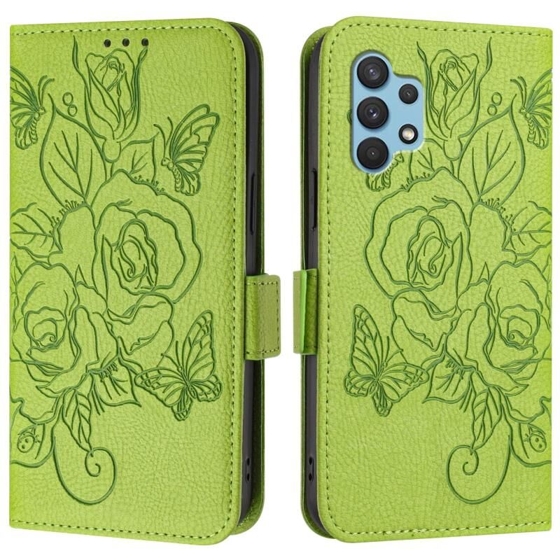 Για Samsung Galaxy A32 4G ανάγλυφο Rose RFID Anti-theft Δερμάτινη θήκη τηλεφώνου (Πράσινο)