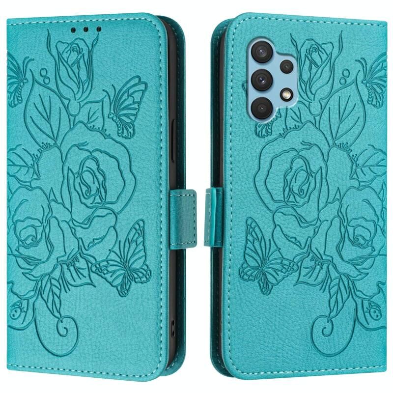 Για Samsung Galaxy A32 4G ανάγλυφο Rose RFID Anti-theft δερμάτινη θήκη τηλεφώνου (γαλάζιο)