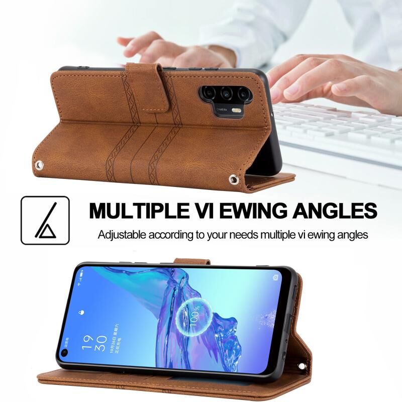 Για Samsung Galaxy A32 4G ανάγλυφη ριγέ μαγνητική πόρπη PU + TPU οριζόντια Flip δερμάτινη θήκη με θήκη & υποδοχή κάρτας & πορτοφόλι & κορνίζα φωτογραφιών & σφεντόνα (καφέ)