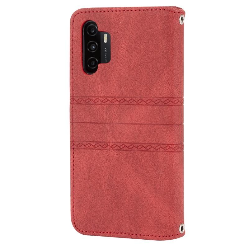 Για Samsung Galaxy A32 4G ανάγλυφη ριγέ μαγνητική πόρπη PU + TPU οριζόντια Flip δερμάτινη θήκη με θήκη & υποδοχή για κάρτες & πορτοφόλι & κορνίζα φωτογραφιών & σφεντόνα (κόκκινο)