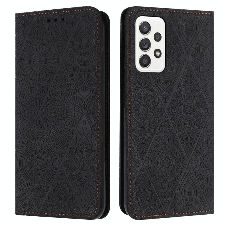 Θήκη τηλεφώνου Samsung Galaxy A32 4G με έθνικ ανάγλυφο σχέδιο και απορροφητικό δέρμα (Μαύρο)