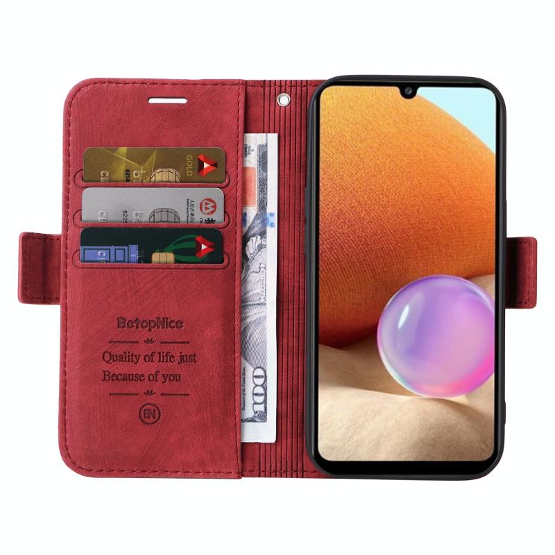 Θήκη τηλεφώνου δερμάτινη διπλής πλευρικής αγκράφας BETOPNICE για Samsung Galaxy A32 4G EU Version (Μωβ) (BETOPNICE)
