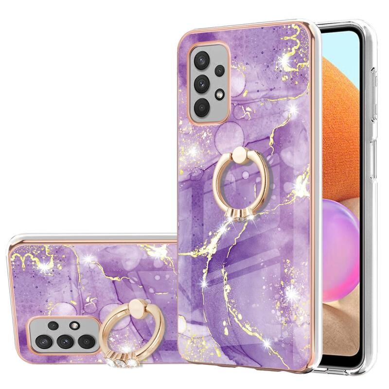 Θήκη για Samsung Galaxy A32 4G EU Version με Επικάλυψη Ηλεκτρολυτικής Μαρμάρου IMD TPU Αντικραδασμική με Δακτύλιο Στήριξης (Μωβ 002)