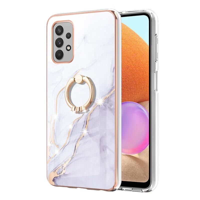 Θήκη για Samsung Galaxy A32 4G EU Version με Επικάλυψη Ηλεκτρολυτικής Μαρμάρου IMD TPU Αντικραδασμική με Δακτύλιο Στήριξης (Μωβ 002)