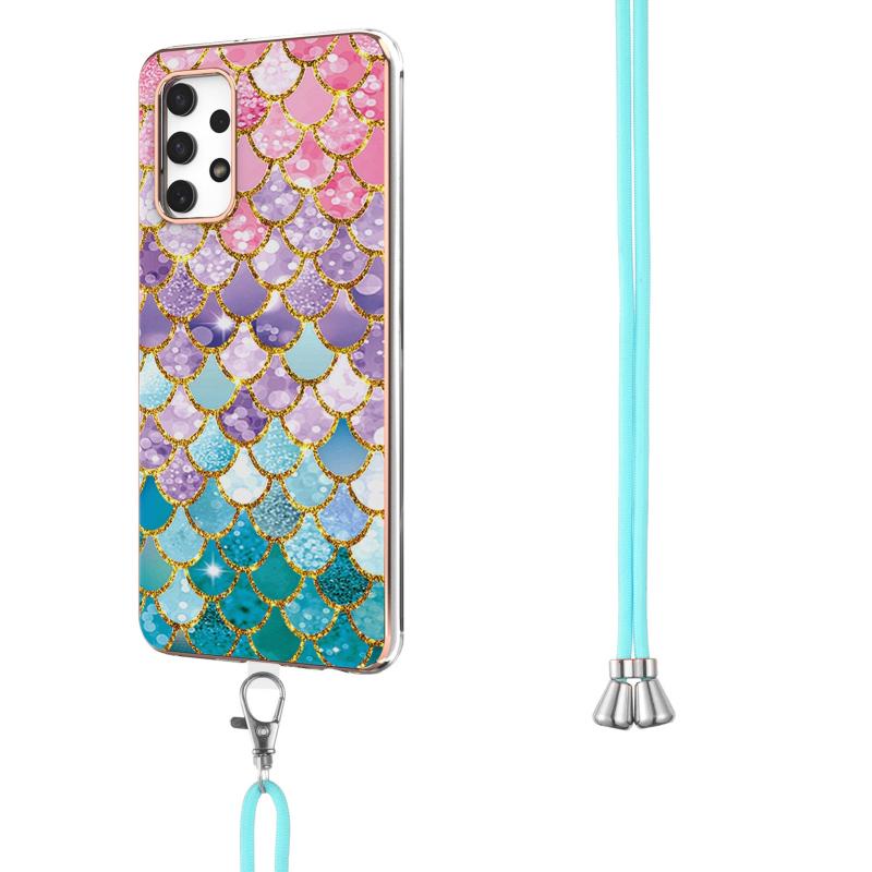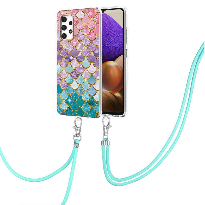 Θήκη προστασίας IMD TPU αντικραδασμική με σχέδιο επιμετάλλωσης για Samsung Galaxy A32 4G EU Version με κορδόνι λαιμού (Πολύχρωμες Λέπια).