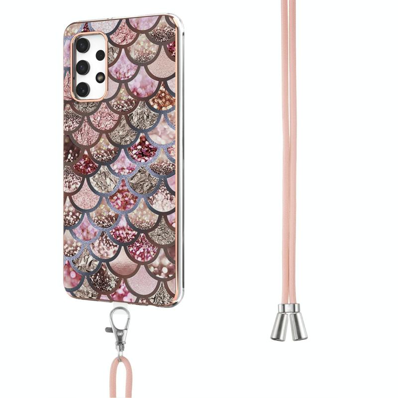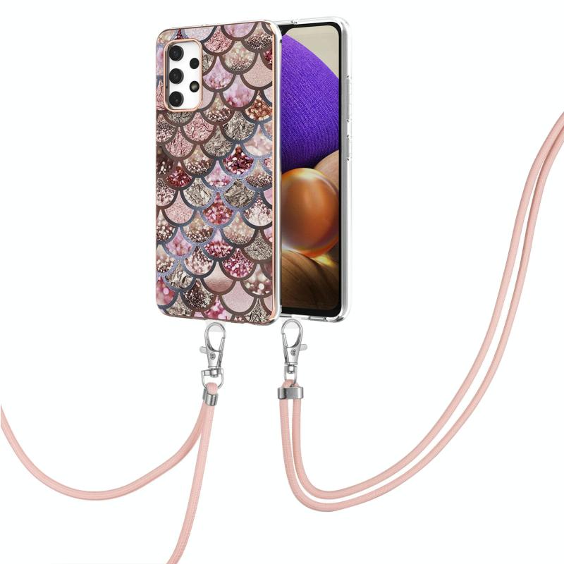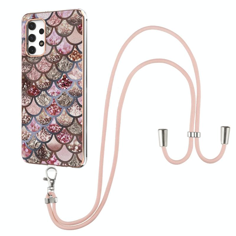 For Samsung Galaxy A32 4G EU Version Electroplating Pattern IMD TPU Shockproof Case with Neck Lanyard(Pink Scales)
