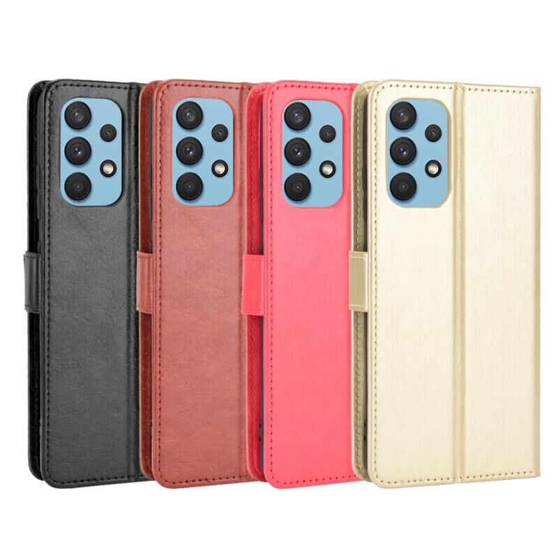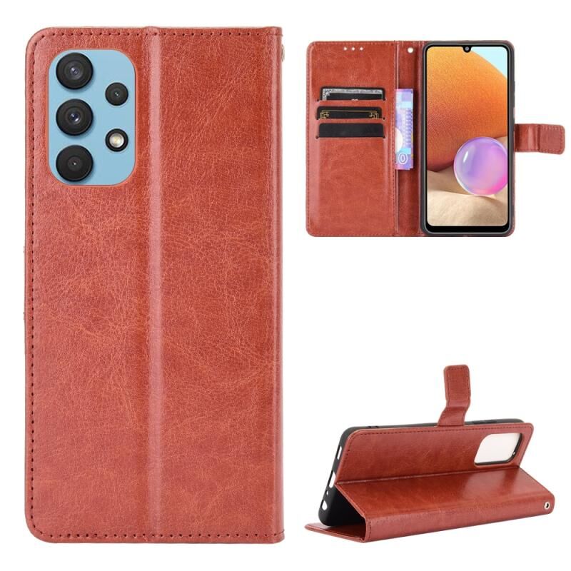 Για Samsung Galaxy A32 4G (έκδοση ΕΕ) Ρετρό Crazy Horse Υφή οριζόντια Flip δερμάτινη θήκη με θήκη & υποδοχές για κάρτες & πλαίσιο φωτογραφιών (καφέ)
