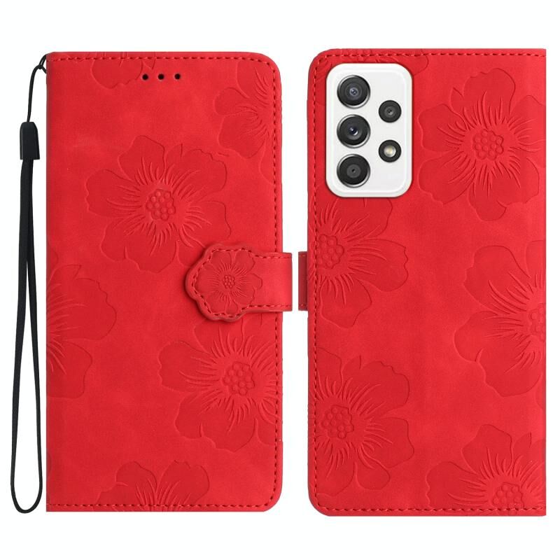 Για Samsung Galaxy A32 4G λουλούδι ανάγλυφο μοτίβο δερμάτινη θήκη τηλεφώνου (Κόκκινο)