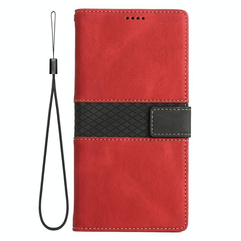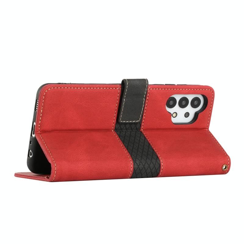 Για Samsung Galaxy A32 4G Πλέγμα ραφή δερμάτινη θήκη τηλεφώνου με κορδόνι (κόκκινο)