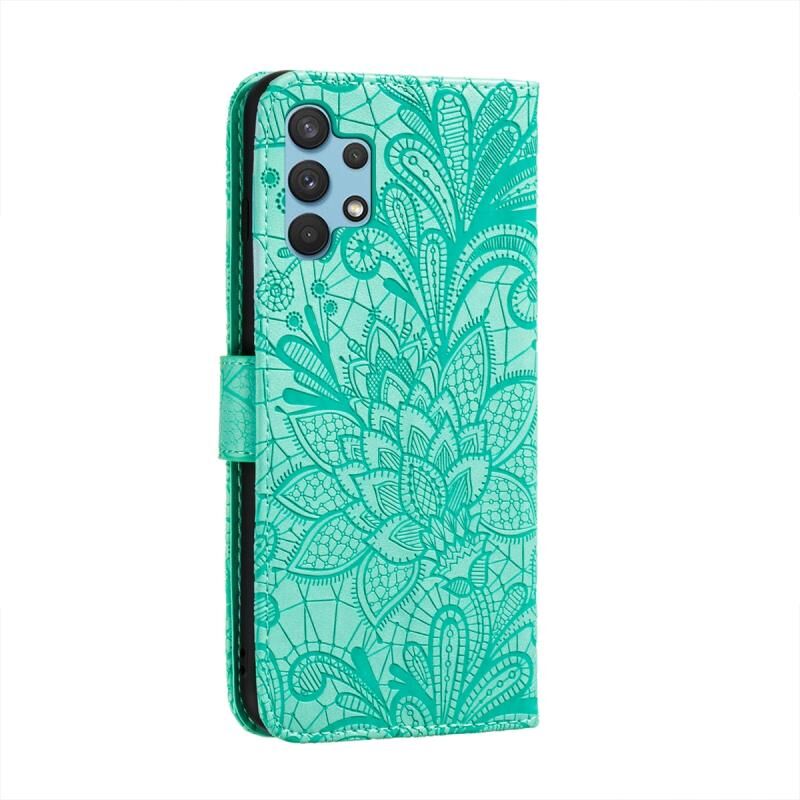 Για Samsung Galaxy A32 4G Lace λουλούδι ανάγλυφο μοτίβο οριζόντια Flip δερμάτινη θήκη με θήκη & υποδοχές για κάρτες & πορτοφόλι & κορνίζα φωτογραφιών (πράσινο)