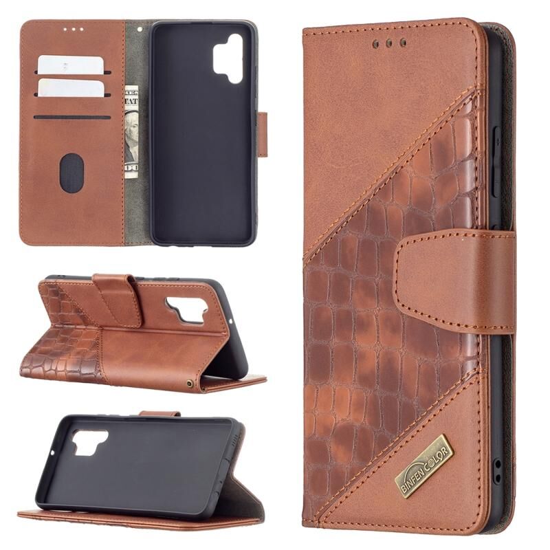 Θήκη Samsung Galaxy A32 4G, Οριζόντια, Δερμάτινη PU με Υφή Κροκόδειλου, σε Αντίστοιχο Χρώμα, με Πορτοφόλι, Θήκη & Θήκες Καρτών (Μαύρο)