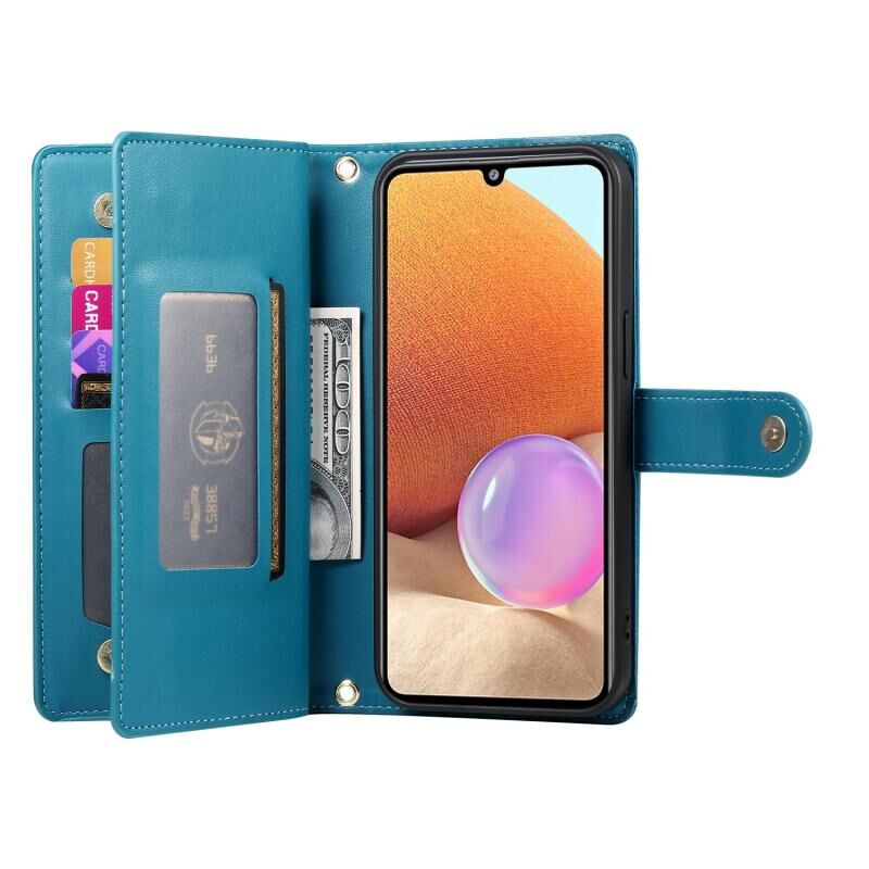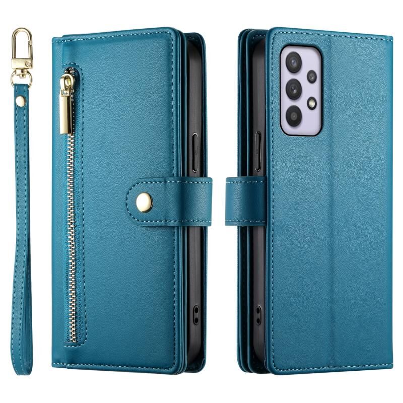Για Samsung Galaxy A32 4G Nine Card-slot φερμουάρ πορτοφόλι τσάντα δερμάτινη θήκη τηλεφώνου (μπλε)
