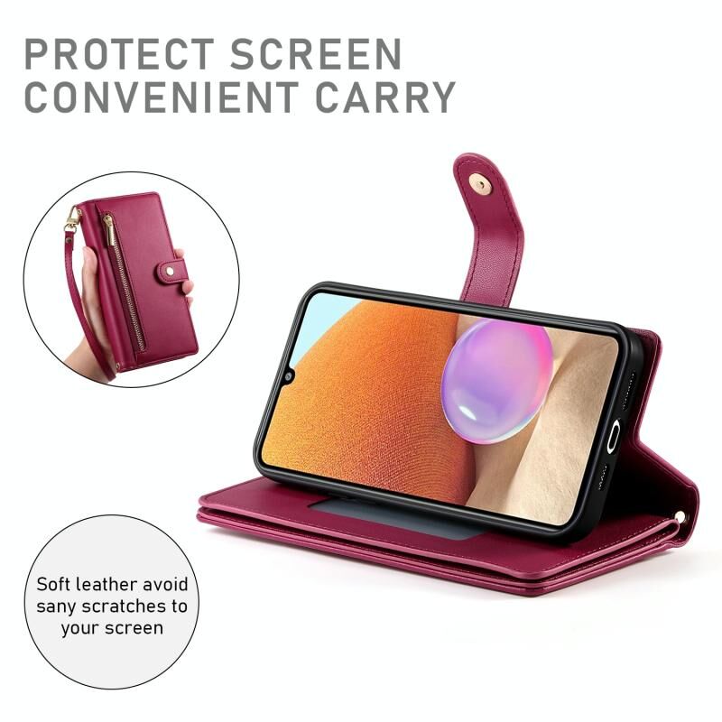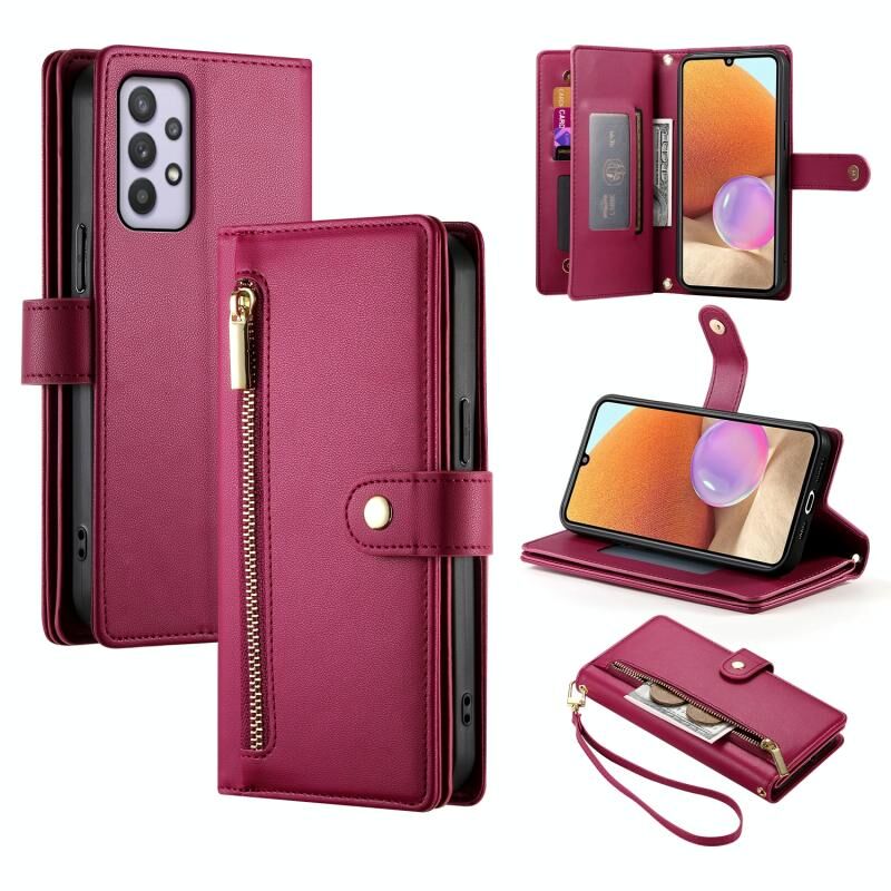 Για Samsung Galaxy A32 4G Nine Card-slot φερμουάρ πορτοφόλι τσάντα δερμάτινη θήκη τηλεφώνου (κόκκινο)
