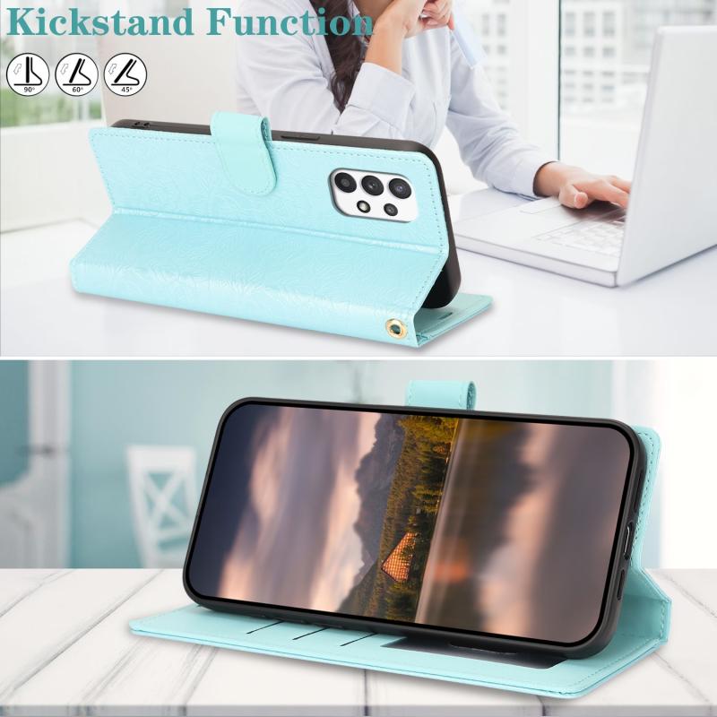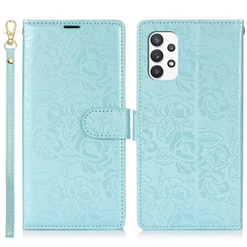Θήκη τηλεφώνου Samsung Galaxy A32 4G με εκτύπωση παιωνιών από δέρμα (Γαλάζιο του ουρανού)