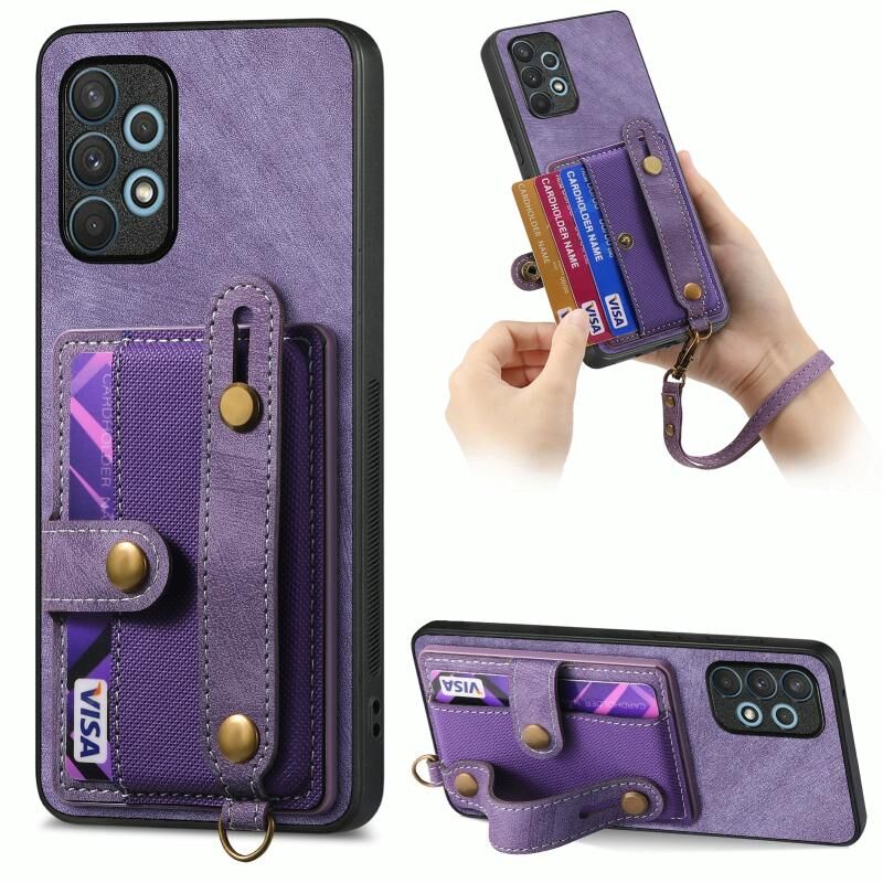 Για Samsung Galaxy A32 4G Ρετρό Σταυρός Wristband πορτοφόλι δέρμα πίσω υπόθεση τηλεφώνου (μωβ)