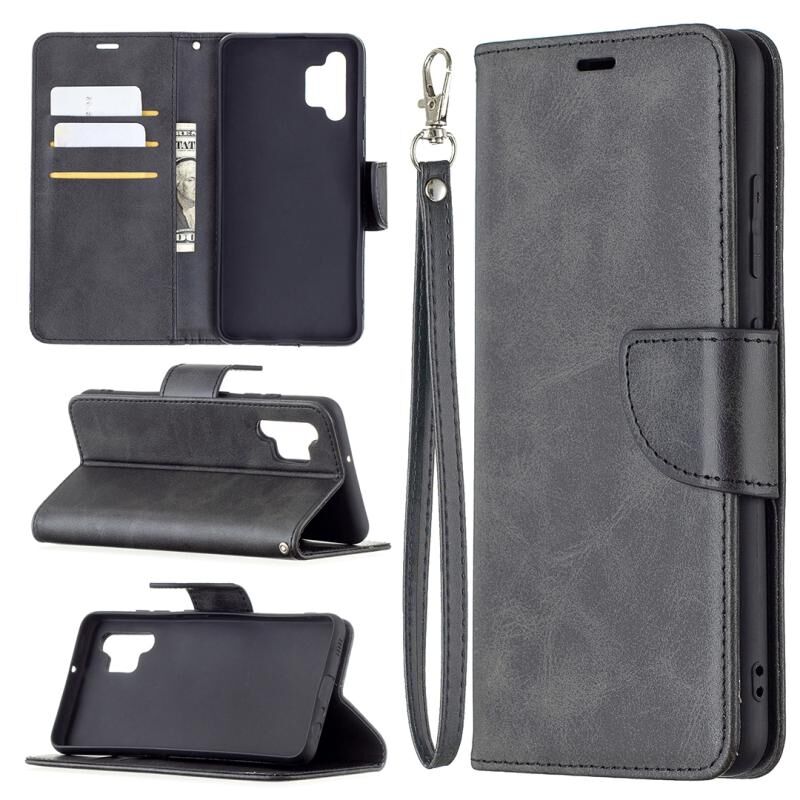 Για Samsung Galaxy A32 4G Retro Lambskin υφή καθαρό χρώμα οριζόντια Flip PU δερμάτινη θήκη με θήκη & υποδοχές για κάρτες & πορτοφόλι & κορδόνι (μαύρο)