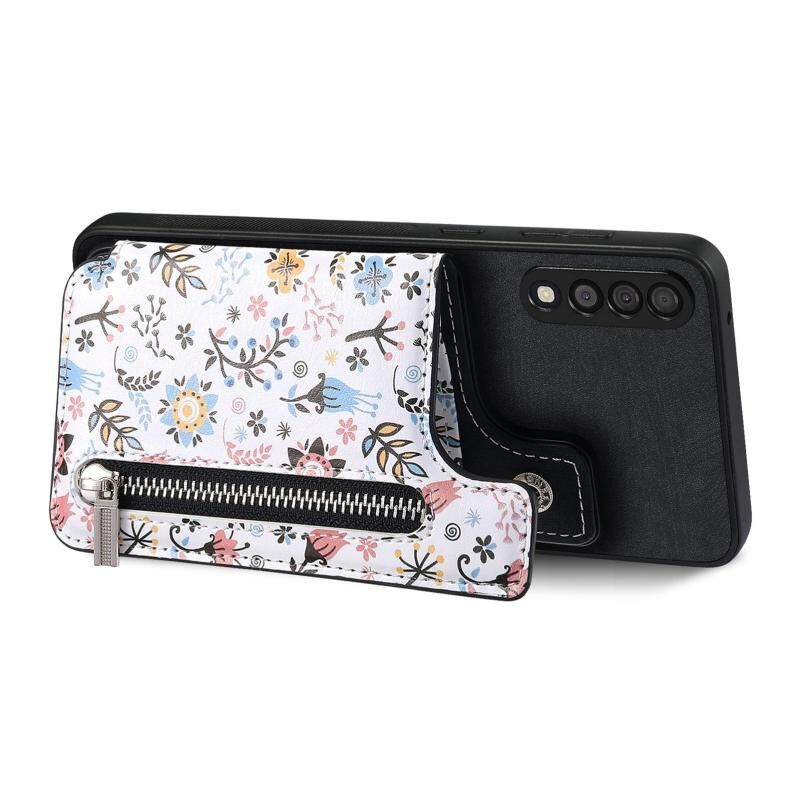 Για Samsung Galaxy A32 4G ρετρό ζωγραφισμένο φερμουάρ πορτοφόλι πίσω υπόθεση τηλεφώνου (μαύρο)