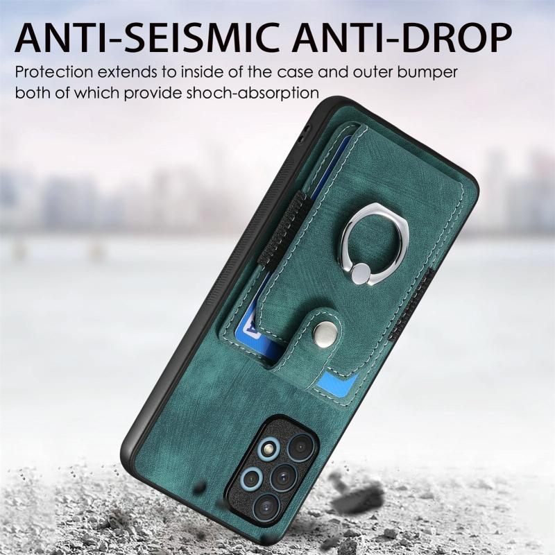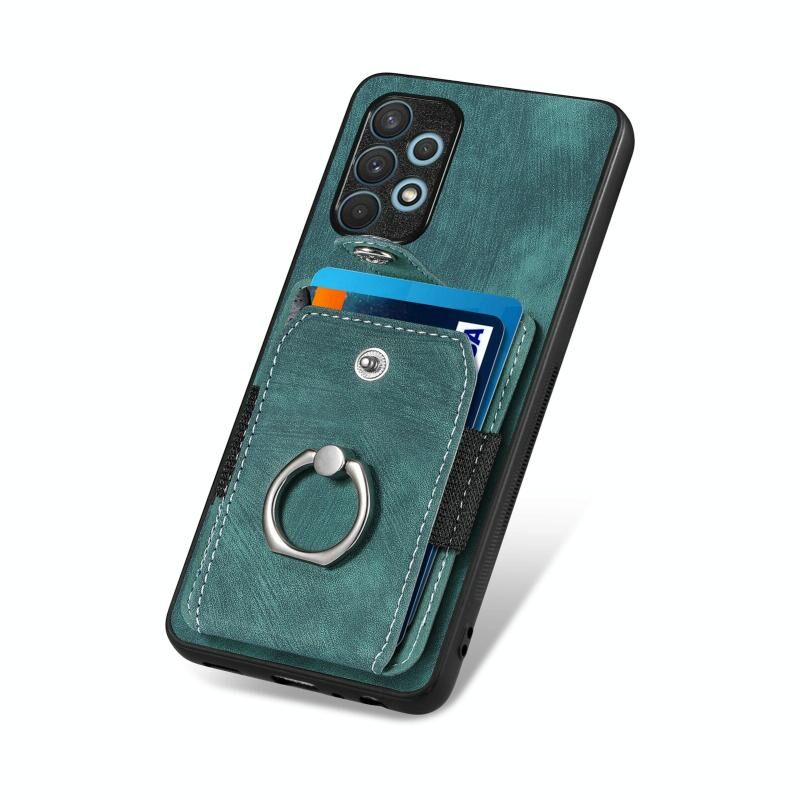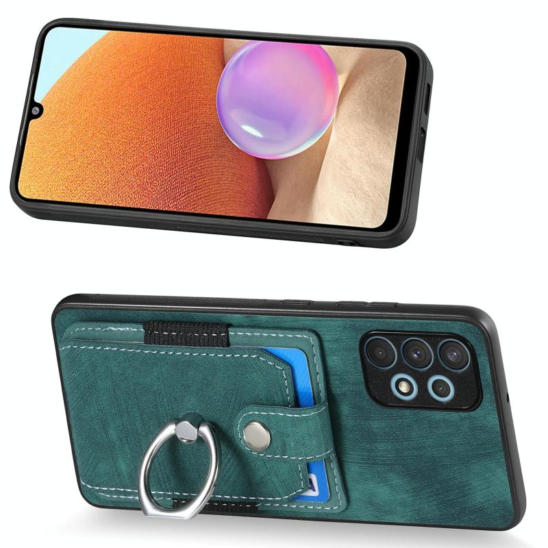 Θήκη κινητού τηλεφώνου Samsung Galaxy A32 4G με κάρτες και δακτύλιο, υφή retro (Καφέ)