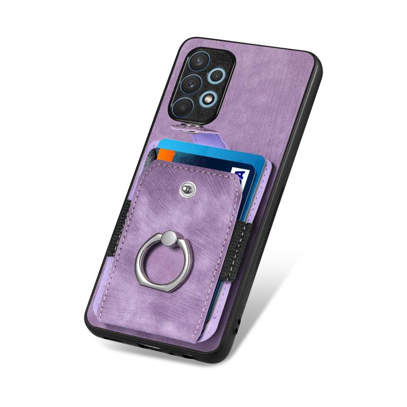 Θήκη κινητού τηλεφώνου Samsung Galaxy A32 4G με κάρτες και δακτύλιο, υφή retro (Μωβ)