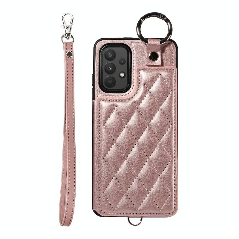 Για Samsung Galaxy A32 4G Rhombic υφή κάρτα τσάντα υπόθεση τηλεφώνου με σύντομο κορδόνι (Ροζ χρυσός)