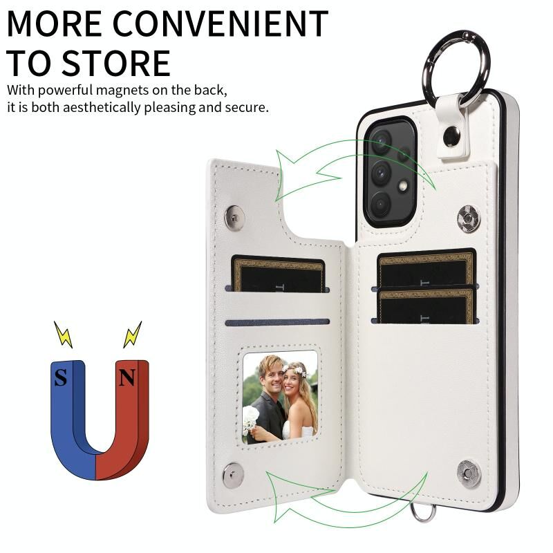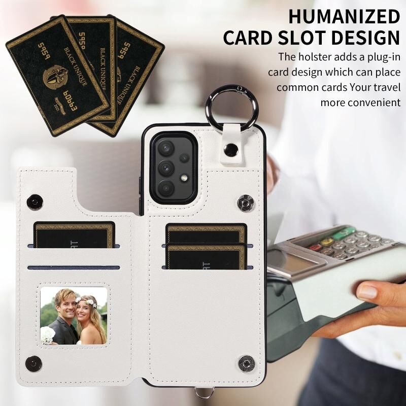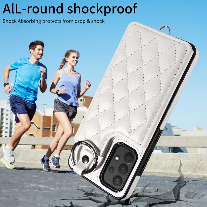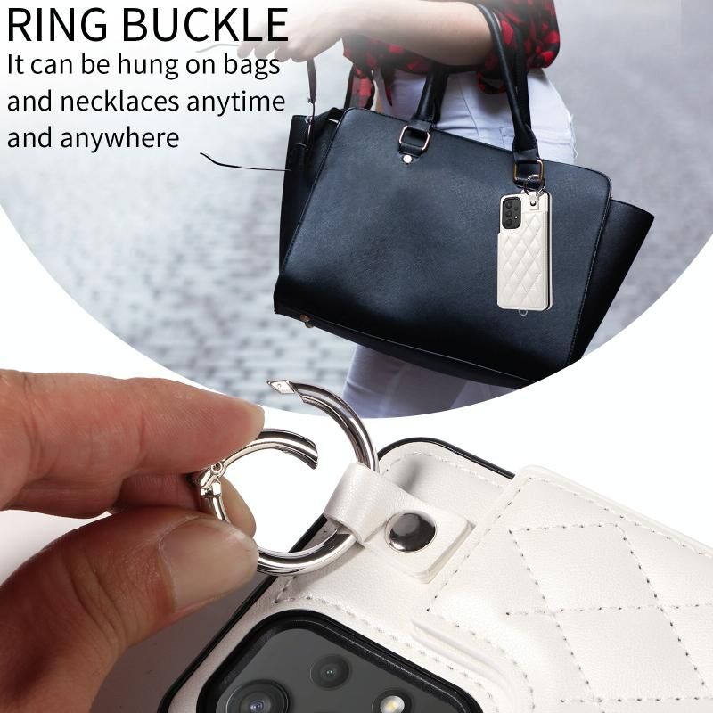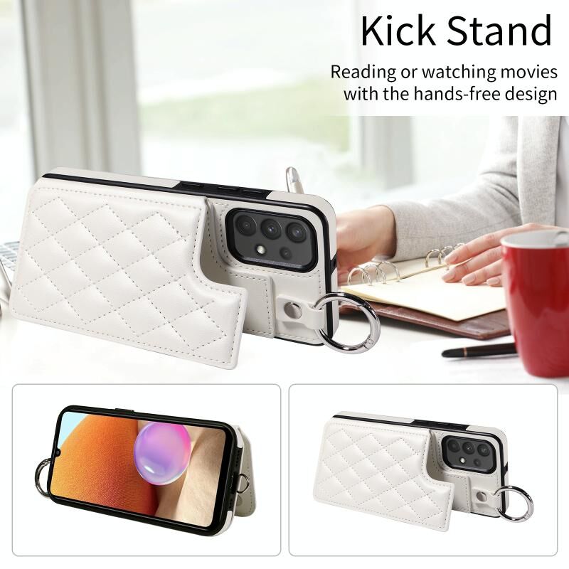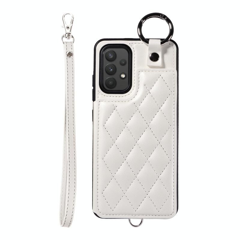 Για Samsung Galaxy A32 4G Rhombic υφή κάρτα τσάντα υπόθεση τηλεφώνου με σύντομο κορδόνι (Λευκό)