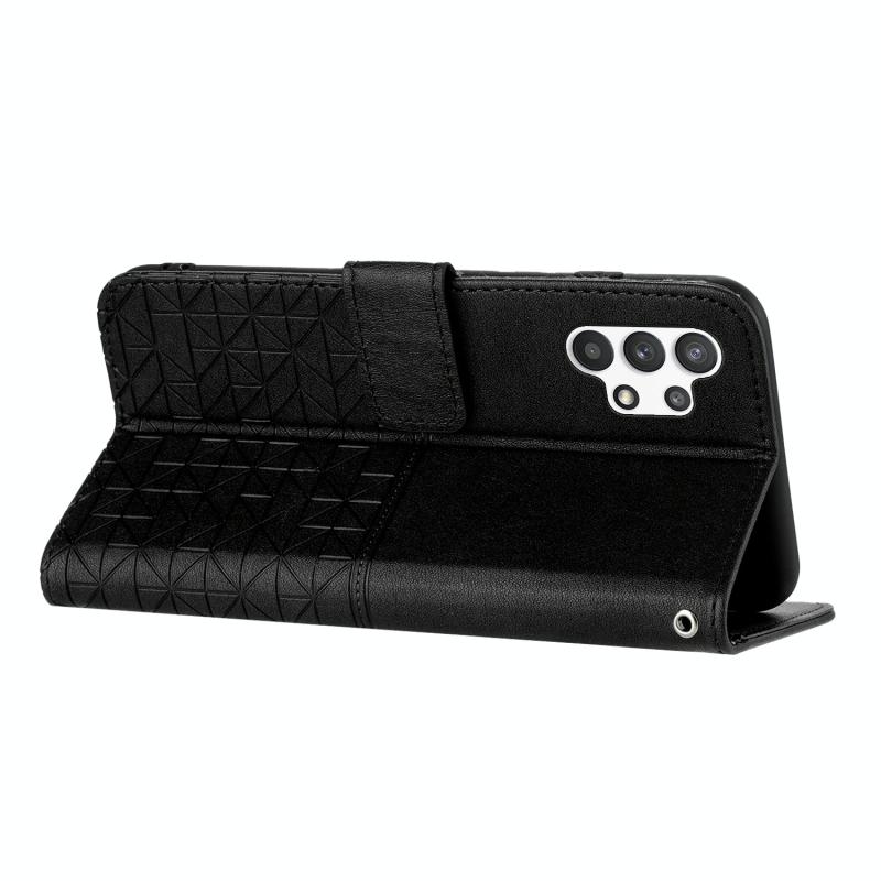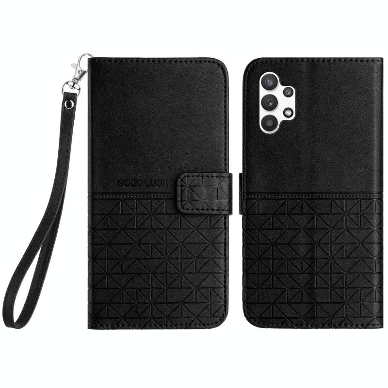 For Samsung Galaxy A32 4G Rhombic Texture Leather Phone Case with Lanyard(Black)