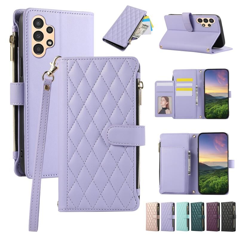 Θήκη τηλεφώνου Samsung Galaxy A32 4G Rhombic με φερμουάρ από δέρμα (Μωβ)