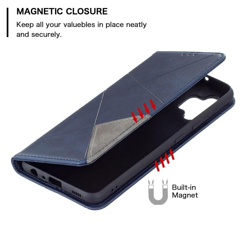 Για Samsung Galaxy A32 4G Rhombus υφή οριζόντια Flip μαγνητική δερμάτινη θήκη με θήκη & υποδοχές για κάρτες (μπλε)