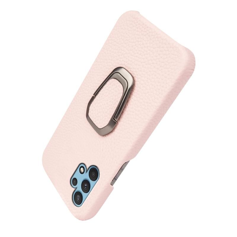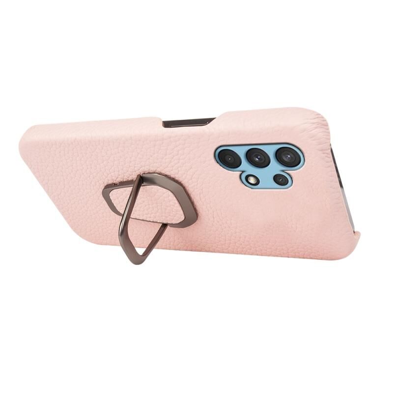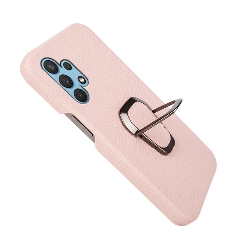Θήκη κινητού τηλεφώνου από γνήσιο δέρμα με υφή λύτσι για Samsung Galaxy A32 4G με δακτύλιο στήριξης (Μαύρο)