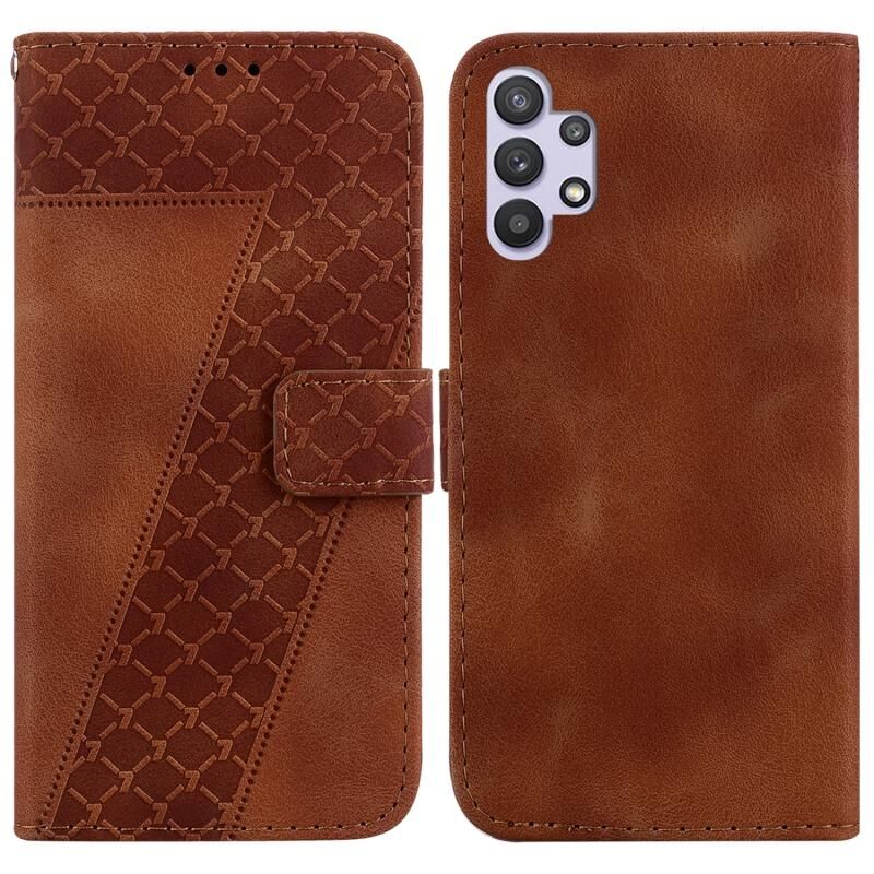 Θήκη τηλεφώνου από ανάγλυφο δέρμα σε σχήμα επτά για Samsung Galaxy A32 4G (Καφέ)