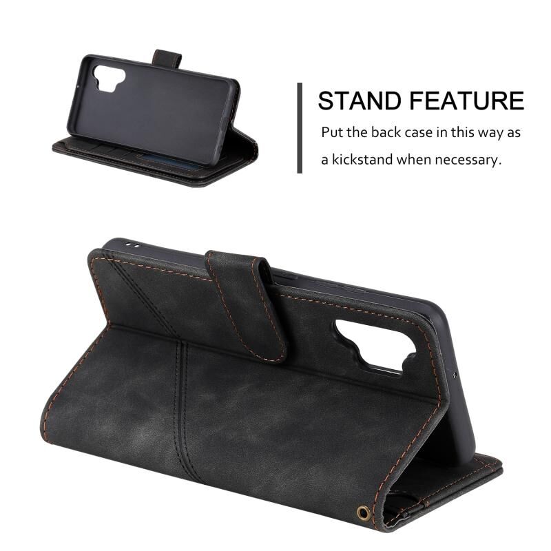 Για το Samsung Galaxy A32 4G Skin Feel Business Οριζόντια Flip PU δερμάτινη θήκη με θήκη & υποδοχές πολλαπλών καρτών & πορτοφόλι & κορδόνι & κορνίζα & κορνίζα φωτογραφιών (Μαύρο)